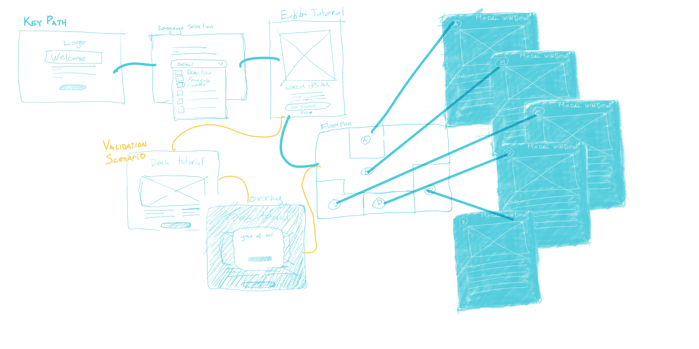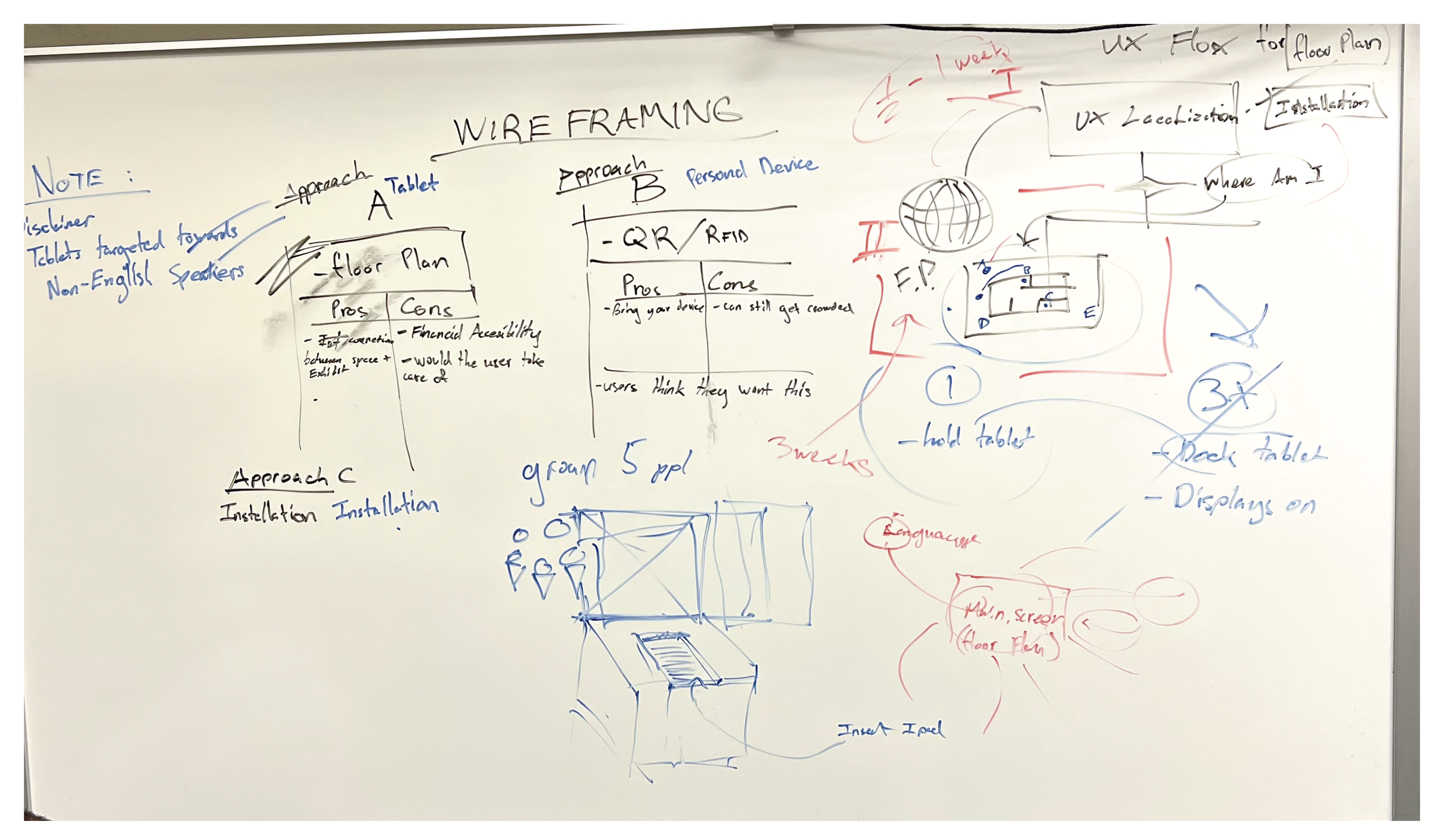 We began this process by mapping out on a whiteboard what approach we wanted to take regarding the platform of the application. We weighed the pros and cons of each one, and then took to creating both digital and traditional sketches of our screens.
