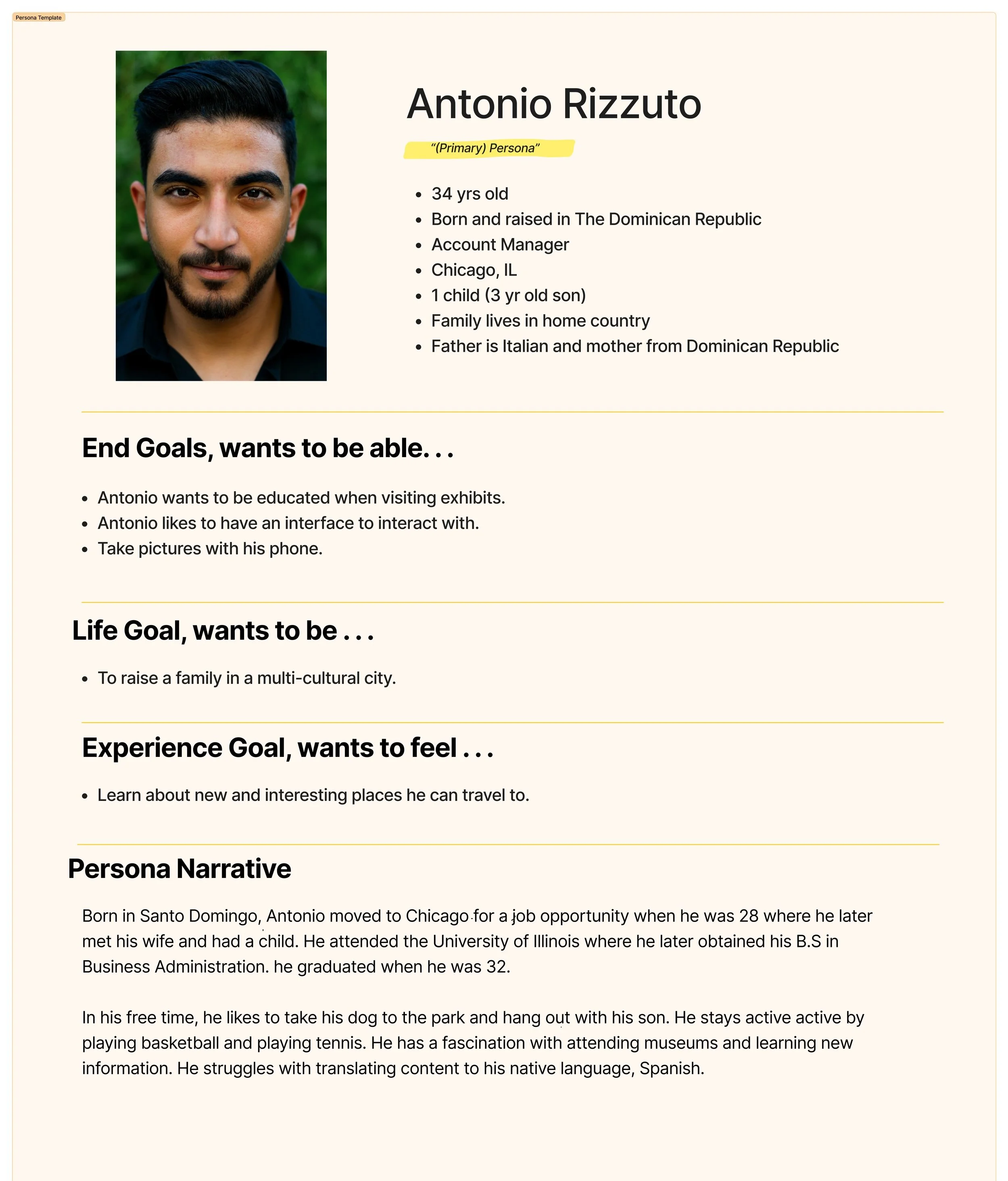 Antonio Rizzuto and Katalina Williams are our personas based off of all of our research from earlier. They helped us develop the most efficient user-centered app we could throughout this process; their personal details are found below.
